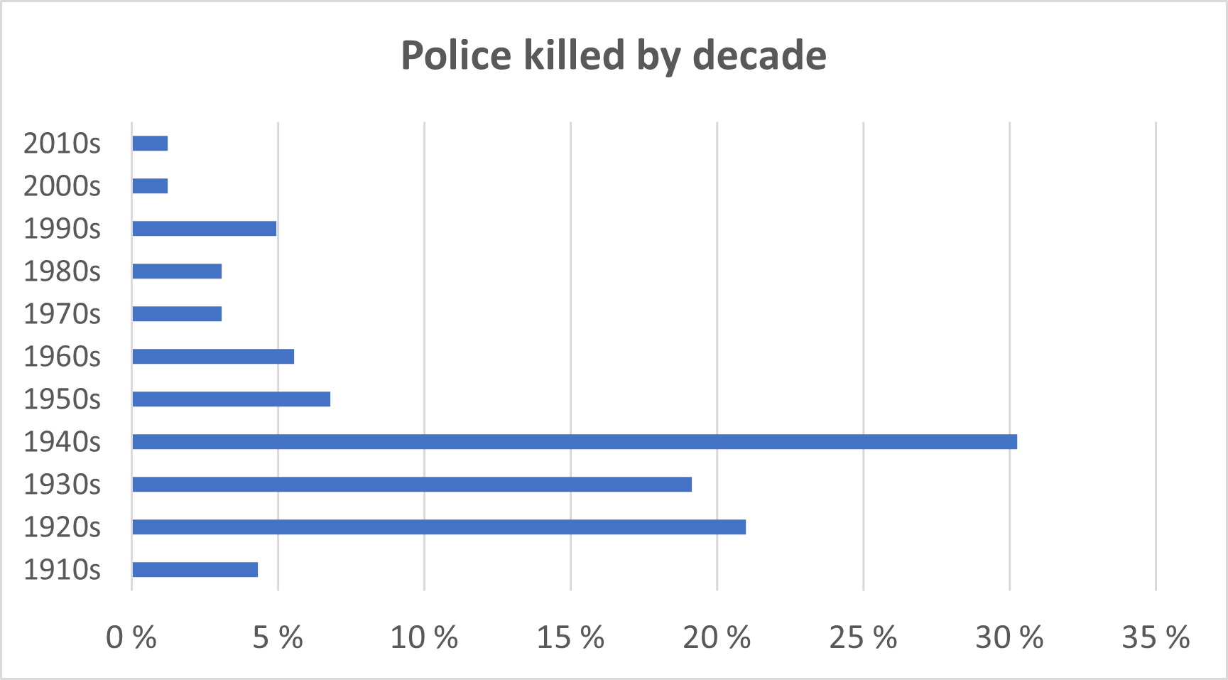 Diagram: Police officers killed by violence by decade
