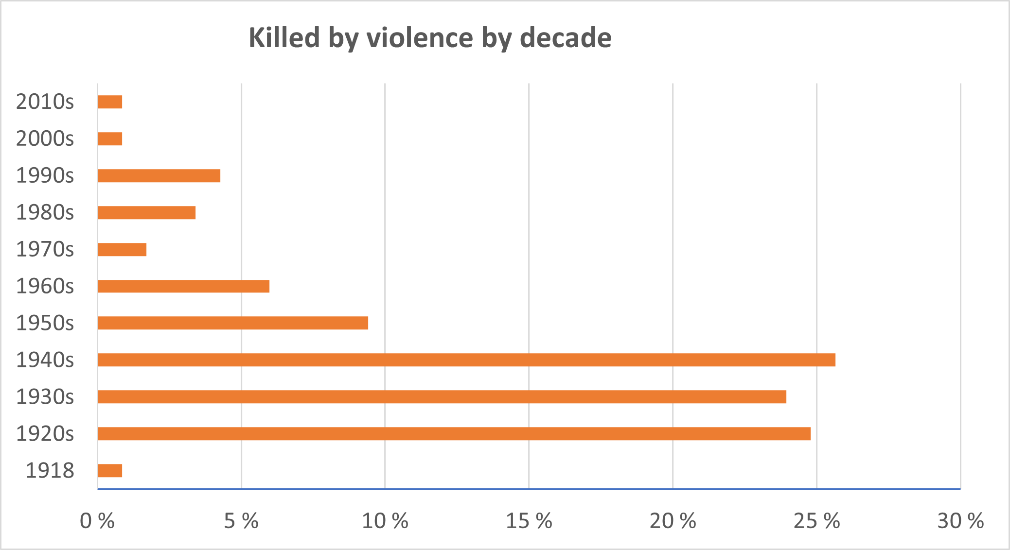 Although the 1940s was the darkest period for police killings in terms of numbers, the proportion of violent deaths was particularly high in the 1920s, 1930s and 1950s. 61% of police killings in the 1940s were violent deaths. In the 1930s, as many as 90% of police killings were violent. In the 1920s, violence accounted for 85% of police killings. All the police killings in the 1950s were caused by violence.
